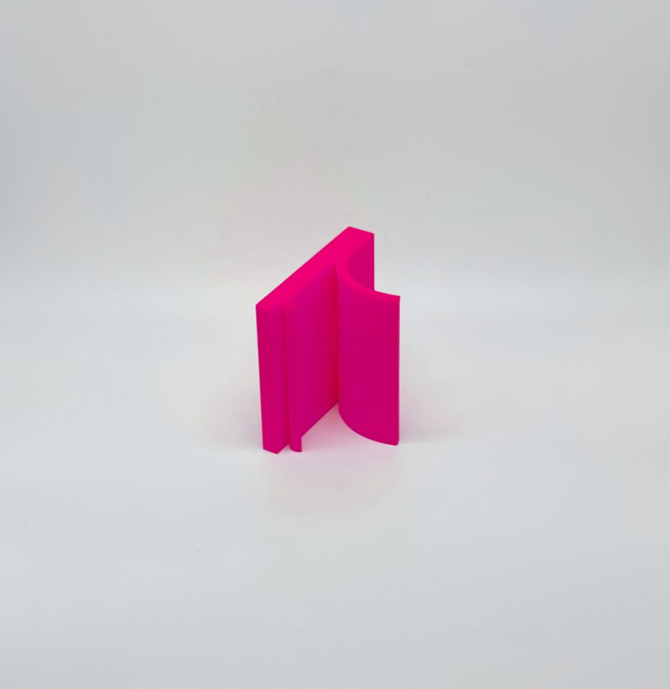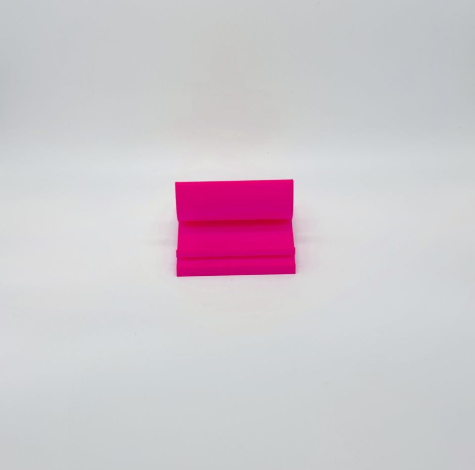 Post-IT Support Smartphone Origine Rose, produit imprimé en PLA. Il s’agit d’un bioplastique, issu généralement d’amidon de maïs, mais aussi de cannes à sucre, betterave, etc. Il est biodégradable en conditions industrielles, ainsi que recyclé par des start-up. Dans son état « naturel » le PLA est beige et légèrement translucide. Les filaments PLA pour imprimante 3D comportent des pigments afin d’obtenir une coloration.